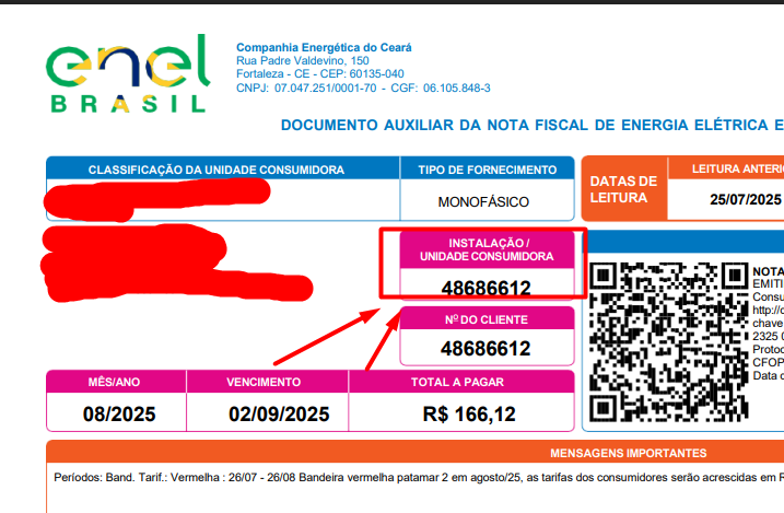 Esse campo corresponde à Unidade Consumidora ou ao Número do Cliente (a nomenclatura varia de acordo com a companhia de energia).